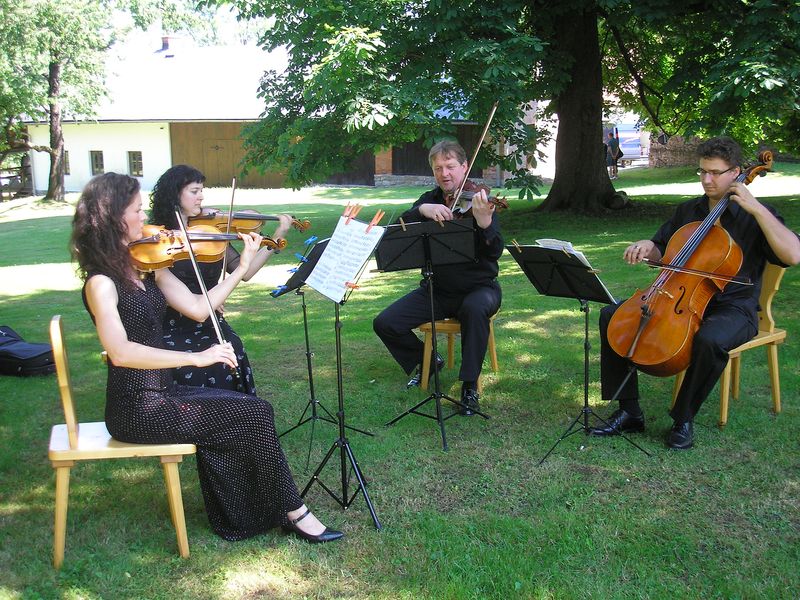 Vystoupení kvarteta Classic Quartet na svatbě v Oldřichovicích na Fojtství.