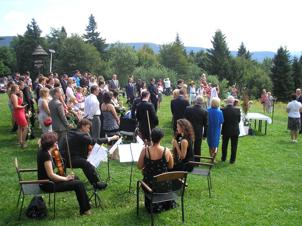 Hudební doprovod svatby na Pustevnách v podání kvarteta Classic Quartet.