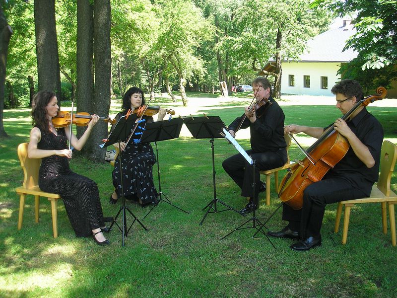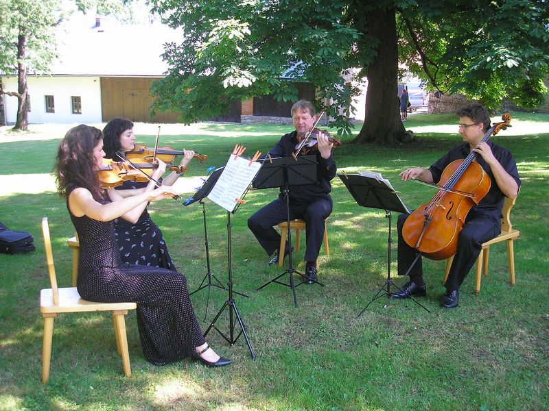 Vystoupení kvarteta Classic Quartet na svatbě v Oldřichovicích na Fojtství.